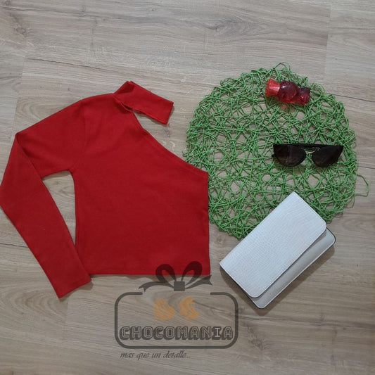 TOP ASIMETRICA CON MANGA LARGA TALLA UNICA HASTA S