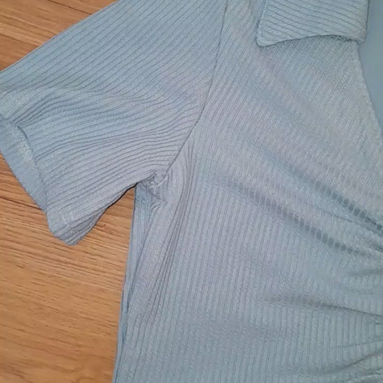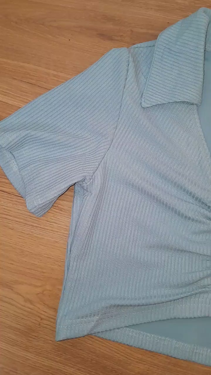 Este encantador top crop de punto fusiona la frescura moderna con un toque de inspiración retro. Confeccionado en un tejido acanalado fino (ribbed), el tono evoca la serenidad del cielo estival.