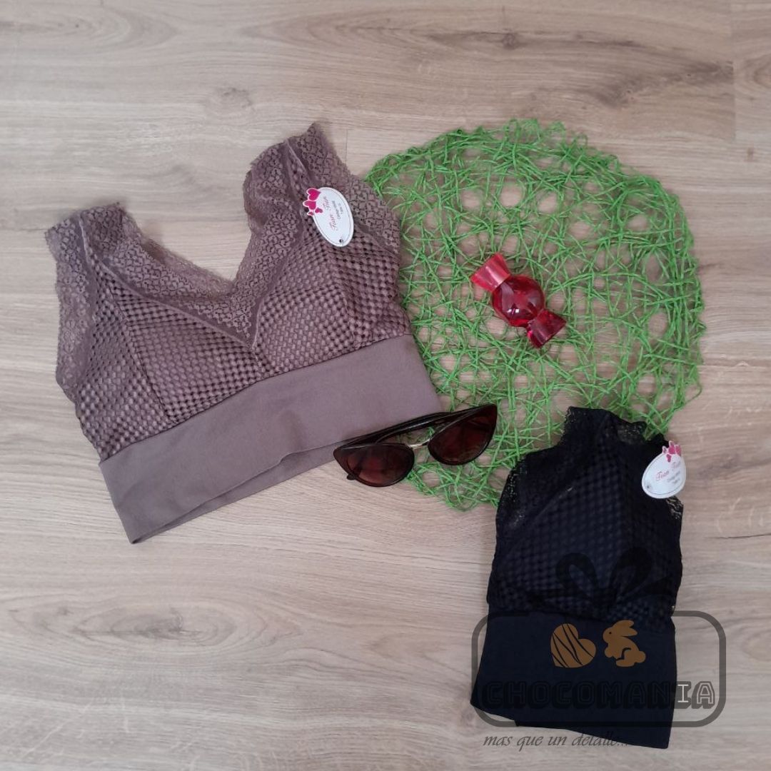 This is a sleeveless crop top with a sophisticated mix of textures. The piece features a deep V-neckline , distinguished by a geometric crochet or lace knit top panel . This textured fabric is contrasted with a smooth, stretchy bottom band that ensures a snug, comfortable fit. The combination of materials and the fitted silhouette give the blouse a bohemian-chic style, ideal for a polished and modern look .