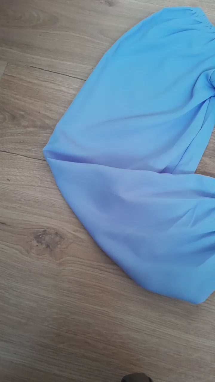 Esta es una elegante blusa crop top en color sólido, confeccionada en un tejido ligero y fluido. Se distingue por su escote cuadrado, que presenta un delicado borde festoneado o con pequeños frunces. El diseño incluye un detalle de cordón ajustable o lazo en el centro del busto, creando un efecto de fruncido en la parte delantera que es a la vez coqueto y favorecedor. Las mangas son largas y terminan en un puño elástico o fruncido con un pequeño volante, añadiendo un toque romántico y dramático. El corte es ajustado al cuerpo y ligeramente corto, ofreciendo una silueta sofisticada y chic.