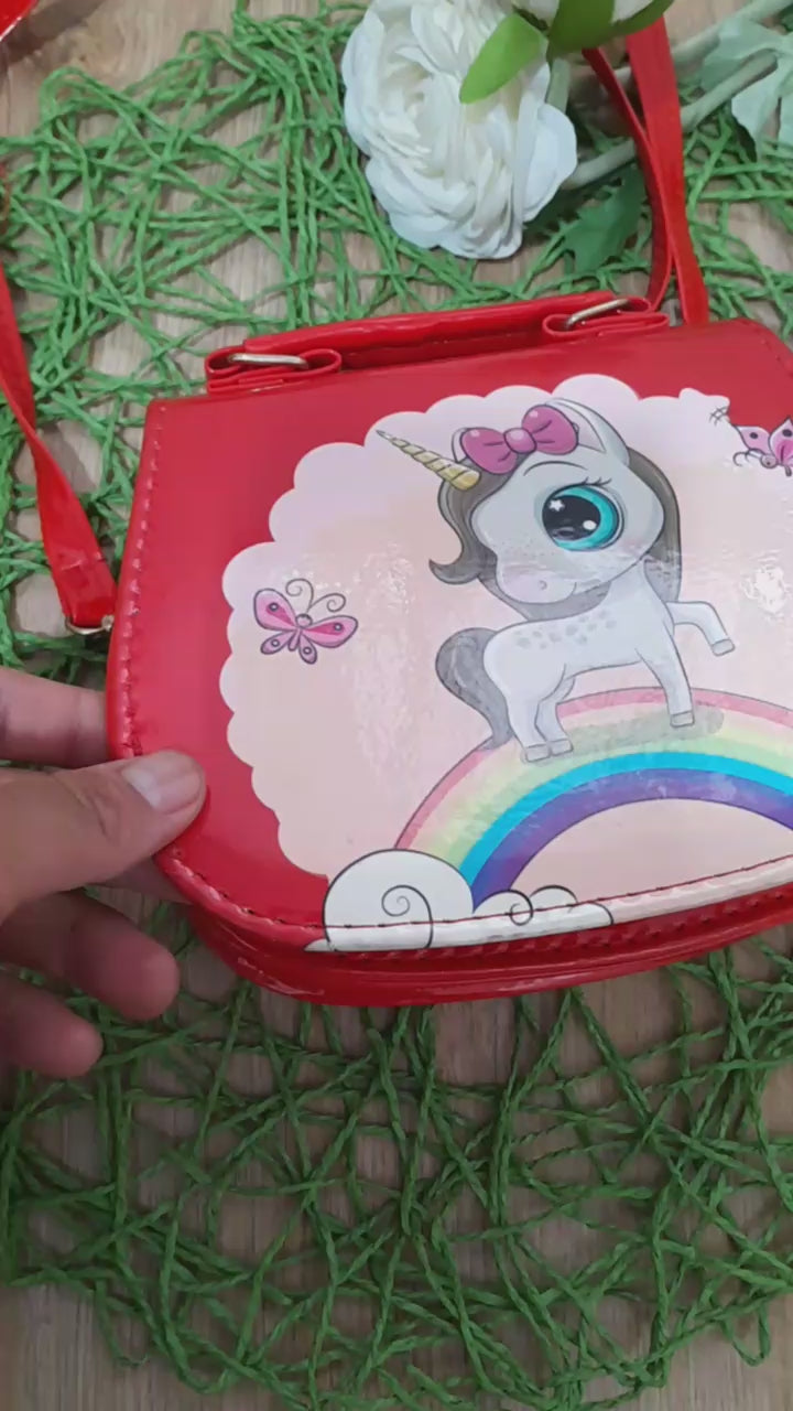 Es el accesorio perfecto para añadir un toque de fantasía y color a cualquier conjunto. Este tipo de cartera generalmente presenta un diseño encantador con la figura de un unicornio, a menudo adornado con detalles brillantes o metálicos que capturan la imaginación. El color rojo vibrante no solo es llamativo, sino que también simboliza energía y entusiasmo, características ideales para acompañar la vitalidad de las niñas. Además, puede incluir características prácticas como correas ajustables, varios compartimentos para mantener el orden y cierres seguros para garantizar la comodidad y seguridad al llevar sus pertenencias. Este accesorio no solo es funcional, sino que también permite a las niñas expresar su personalidad y amor por los cuentos mágicos.
