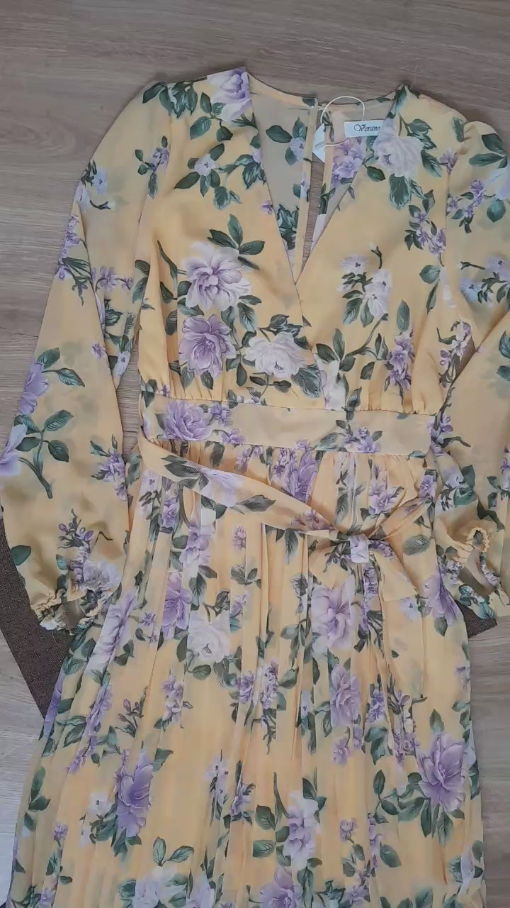 Un vestido de mangas largas amarillo con flores y largo es una prenda que combina elegancia y frescura de manera encantadora. El color amarillo aporta una sensación de alegría y vitalidad, destacando en cualquier ambiente. Las mangas largas añaden un toque de sofisticación y son ideales para mantener la calidez en climas más frescos. Además, el estampado floral le otorga un aire romántico y natural, perfecto para eventos al aire libre o para un look primaveral. La longitud del vestido, al ser largo, añade un elemento de majestuosidad y fluidez, ideal para ocasiones especiales o para un día en el que quieras sentirte especialmente radiante. Combínalo con accesorios sencillos para dejar que el vestido sea el centro de atención.