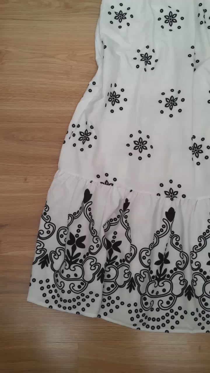 Un vestido blanco largo con estampado es una prenda versátil y elegante que puede adaptarse a diversas ocasiones. Este tipo de vestido combina la pureza y frescura del color blanco con la creatividad y el dinamismo que aportan los estampados. Los patrones pueden variar desde florales, geométricos, abstractos o incluso artísticos, permitiendo expresar el estilo personal de quien lo lleva. El largo del vestido añade un toque de sofisticación, haciéndolo ideal tanto para eventos formales como para ocasiones más casuales, dependiendo de los accesorios con los que se combine. Además, el tejido del vestido, que puede ser desde algodón ligero para un look veraniego, hasta seda para una apariencia más elegante, también influye en la percepción y el uso de la prenda. En resumen, un vestido blanco largo con estampado es una excelente opción para quienes buscan proyectar una imagen fresca, elegante y con un toque de originalidad.