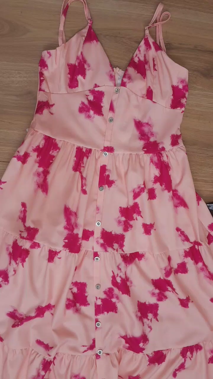 VESTIDO LARGO MARMOLEADO MELON CON FUCSIA S/M 👗