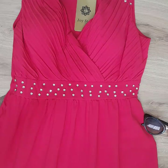 El vestido largo rojo sin mangas con copas incluidas es una elección elegante y sofisticada para cualquier ocasión especial. Su diseño sin mangas permite una gran libertad de movimiento y un look fresco, ideal para eventos tanto en interiores como exteriores. Las copas incluidas proporcionan soporte adicional, garantizando comodidad y confianza al usarlo. El color rojo, clásico y atrevido, siempre logra captar la atención, simbolizando pasión y energía. Este tipo de vestido es perfecto para combinar con accesorios dorados o plateados y puede complementar cualquier tono de piel, haciendo que quien lo lleve se sienta segura y radiante.